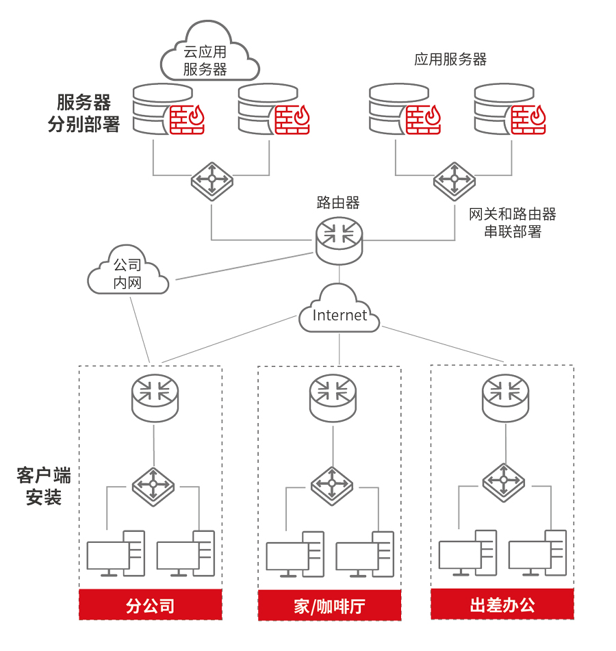 控制平面与数据平面分离零信任部署架构,天然支持多云多数据中心环境,用户通过一个客户端即可实现不同数据中心的统一安全访问,集中可视化统一管理,减轻运维压力,降低实施成本,全局情况轻松掌握。