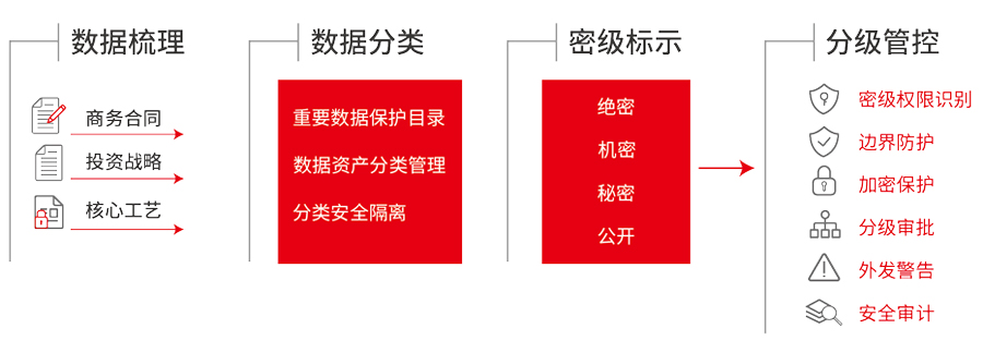 支持分类安全隔离、数据标密、升降密以及精细化的流程分级管理和内容分级管控。