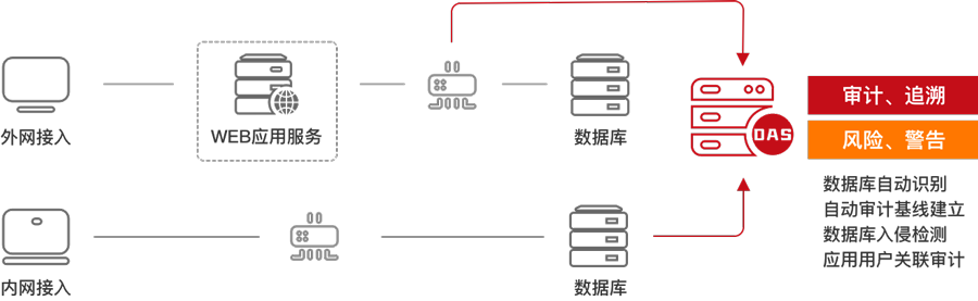 亿赛通数据库安全审计系统(简称 DAS)是一款基于数据库应用流量采集,基于数据库\运维\应用协议解析,SQL语句还原技术,大数据架构技术下的综合性数据库安全审计产品。产品对数据库访问行为进行监控和审计,并对其中危险操作向管理员实时告警提醒。独立部署,不改造不影响业主网络环境。